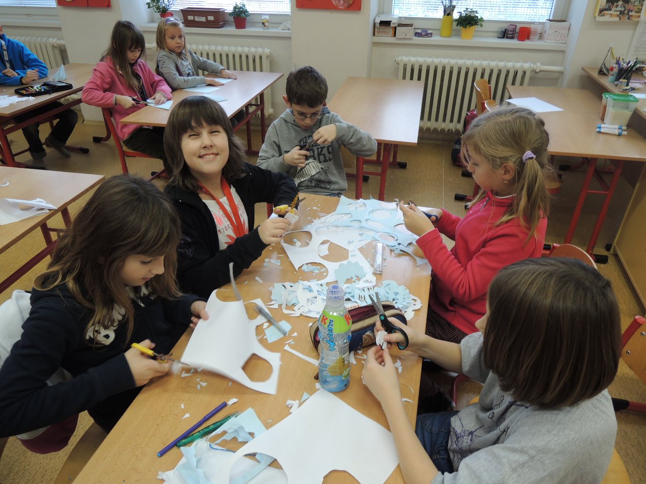 Jednoho obzvlášť nepěkného dne jsme se v čele s paní vychovatelkou rozhodli, že si vyrobíme zimní vločky.